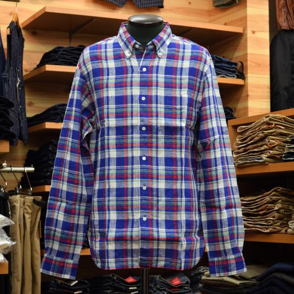 こちらは、チェックのリネン100%のボタンダウンシャツです。